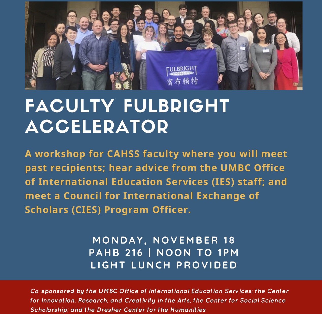 Michelle Bolourchi, an Outreach and Recruitment Specialist, from the Fulbright Scholar Program, as well as staff from UMBC Office of International Education Services, will be on hand to provide information and answer questions about various programs and the application process.