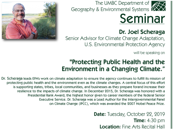 This event is cosponsored by the UMBC Department of Geography & Environmental Systems; the UMBC Climate Action Steering Committee and Sustainability Matters Office; College of Arts, Humanities and Social Sciences; Social Sciences Forum; and Interdisciplinary Science Program.