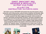 Discover the Power of Pop Culture! Course: GWST 390/CSST 392: Gender & Sexuality in Pop Culture Time: Wednesdays 4:30-7 PM Instructor: Kathryn Kein Explore how pop culture shapes...