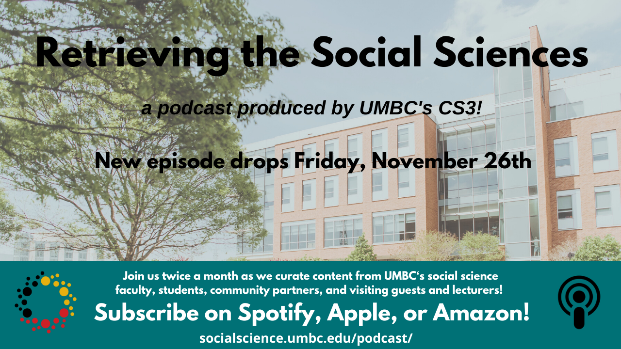 Retrieving the Social Sciences is a production of the UMBC Center for Social Science Scholarship. Our podcast host is Dr. Ian Anson, our director is Dr. Christine Mallinson, our associate director is Dr. Felipe Filomeno and our production intern is Jefferson Rivas. Our theme music was composed and recorded by D’Juan Moreland. Special thanks to Amy Barnes and Myriam Ralston for production assistance. Make sure to follow us on Twitter, Facebook, Instagram, and YouTube, where you can find full video recordings of recent UMBC events.