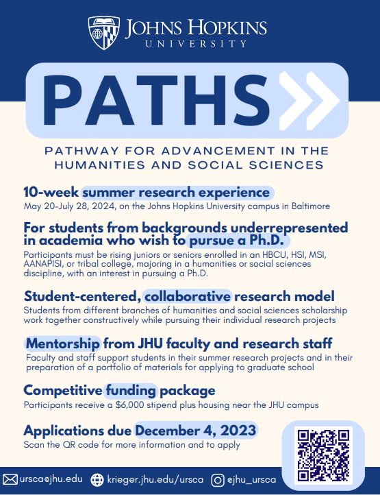 Application Deadline: December 4th Attached Flyer for Johns Hopkins Summer Research Opportunity Posted: November 22, 2023, 10:35 AM