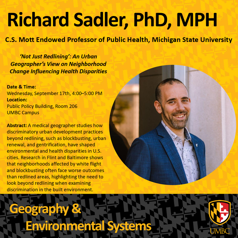 Public health researchers have become captivated with the idea of the long-outlawed practice of redlining influencing contemporary environmental and health disparities (mainly owing to the presence of a publicly available, geocoded dataset on the topic). But over the last 50+ years, a variety of discriminatory urban development practices have also marked our landscapes in ways that drive disparities. The deeper understanding of urban development known to geographers affords a meaningful consideration of these additional practices (which can include restrictive covenants, blockbusting, urban renewal, slum clearance, freeway construction, and gentrification). Much of my research as a medical geographer revolves around thinking about the patterns of disinvestment and decline experienced in American cities, especially via these processes. Doing so helps deepen our understanding of how environmental exposures are driven by a range of land use and planning decisions not just at one point in time, but over the course of many decades. In this talk, I will elaborate on this background and present research findings from earlier work in Flint and Baltimore. A major recurring finding in this work is that areas marked by high rates of white flight and blockbusting often fare even worse than formerly redlined neighborhoods, work which suggests a critical need to move beyond redlining in assessing the role of discrimination in the built environment.