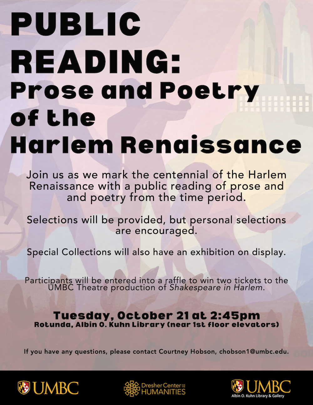 Join the Dresher Center for the Humanities and the Albin O. Kuhn Library for a special event honoring the centennial of the Harlem Renaissance.